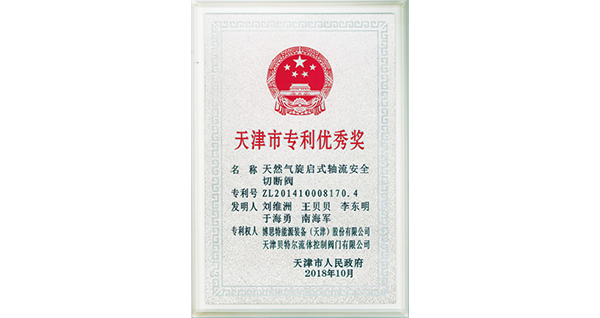 贝特尔分别获得国家知识产权局颁发的两项发明专利,《天然气旋启式轴流安全切断阀》和《集成超压、欠压、手动、远程控制于一体的安全切断阀指挥器》。两项发明专利为天然气管道输送中的关键设备-安全切断阀增加了多种功能,并提高了其安全系数。