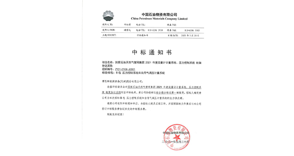 公司中标国家管网集团流量计量系统、压力控制系统、自用气计量调压系统框架采购第一名,成为三个品类产品的主力供货商