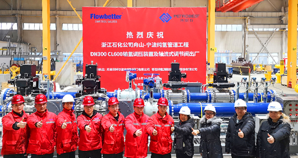 2021年12月24日由博思特提供调压装置、贝特尔提供轴流式调节阀、东方华智提供工程设计服务的浙江石化4000万吨、年炼化一体化项目舟山-宁波石化基地互联互通纯氢管道工程DN300 CL600调压装置及轴流式调节阀顺利出厂。