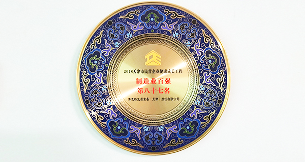 公司荣获2018天津市民营企业健康成长工程制造业百强奖牌。