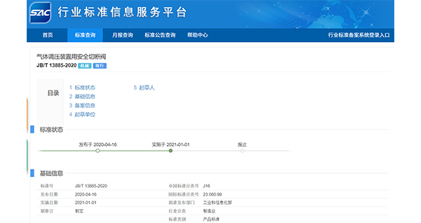 贝特尔公司和博思特公司联合主编的JB/T 13885-2020《气体调压装置用安全切断阀》机械行业标准于2021年1月1日起实施,填补了国内机械行业在该产品标准上的空白。