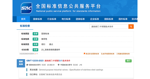 贝特尔公司参修编的国家标准GB/T 12230-2023《通用阀门 不锈钢技术条件》 于2023年12月1日起实施。