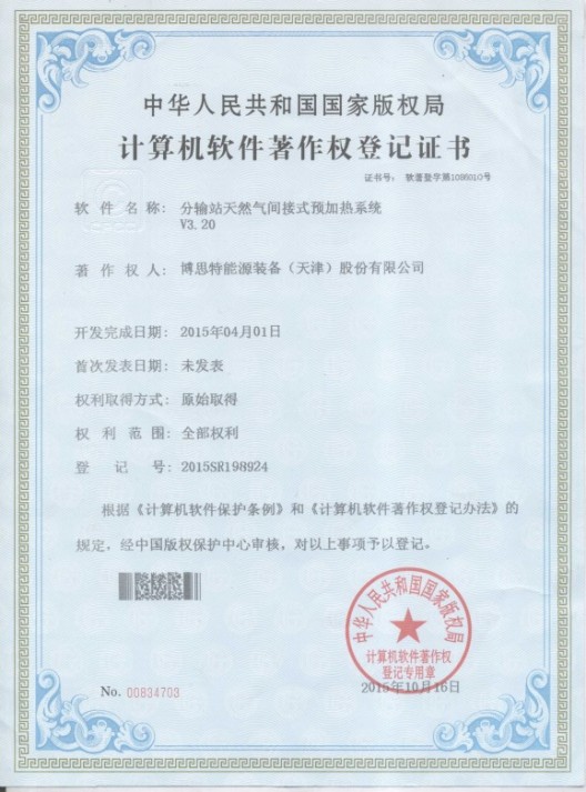 我公司编写的《分输站天然气间接式预加热系统V3.20》和《降低原油凝点控制系统V4.30》软件,分别于2015年10月份、11月份顺利通过国家版权局的著作权的申请审批。